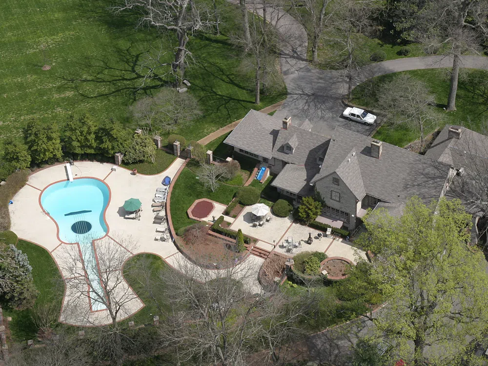 John follows in the hallowed swim trunks of Country Music Hall of Fame member Webb Pierce, who built a guitar-shaped swimming pool in Nashville in the 1970s (see below).