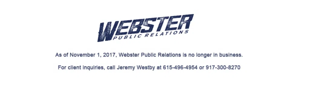 On Nov. 1, a posting on Webster PR’s website stated the firm was no longer in business. A screenshot of the firm’s statement is below.