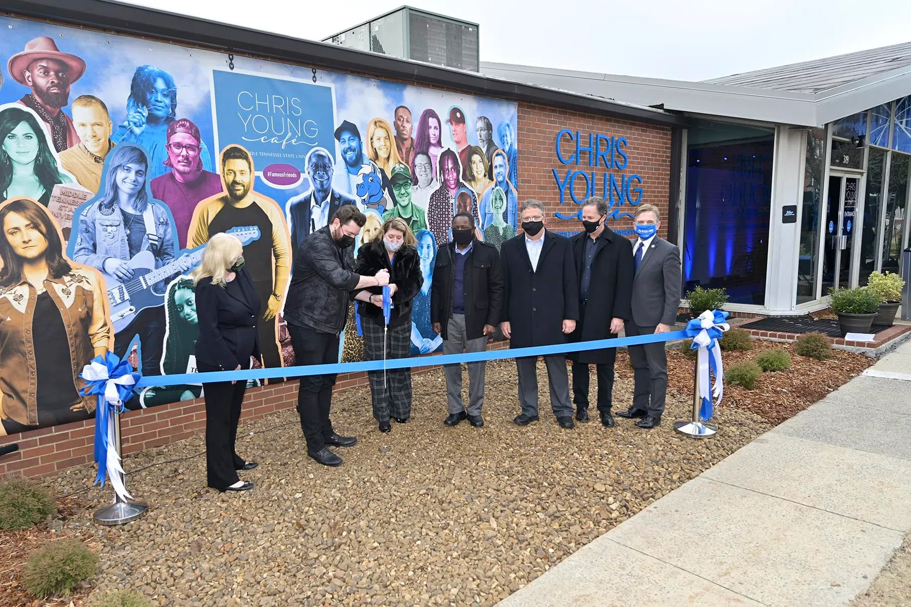 He was on the campus of his alma mater, MTSU (Middle Tennessee State University) to unveil a Tennessee Music Pathway marker and cut the ribbon for the grand opening of the Chris Young Café.